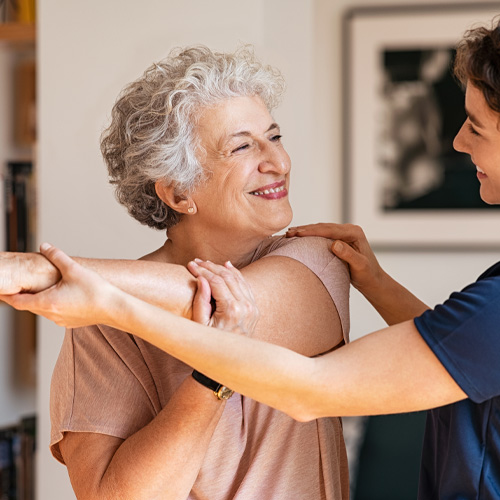 - Keep your mobility: We can show you simple range of motion exercises that will get the blood flowing to your joints, keeping them healthy. Reaching overhead, across your body, or behind your back are all basic stretches that can do wonders — just make sure you never force a movement!